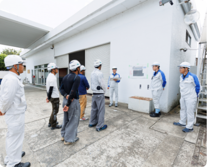 - 8:00 朝礼、KY(危険予知)ミーティング